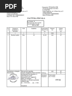 Principala diferență dintre factura fiscală completată de către entitatea plătitoare de tva și una ce nu este plătitoare de tva este reflectarea codului tva în rândul 1 furnizor. Nr crtdenumirea produselor si serviciiloru.m.cantitateapretul unitar. Model factura fiscala completata pentru firma de exercitiu.