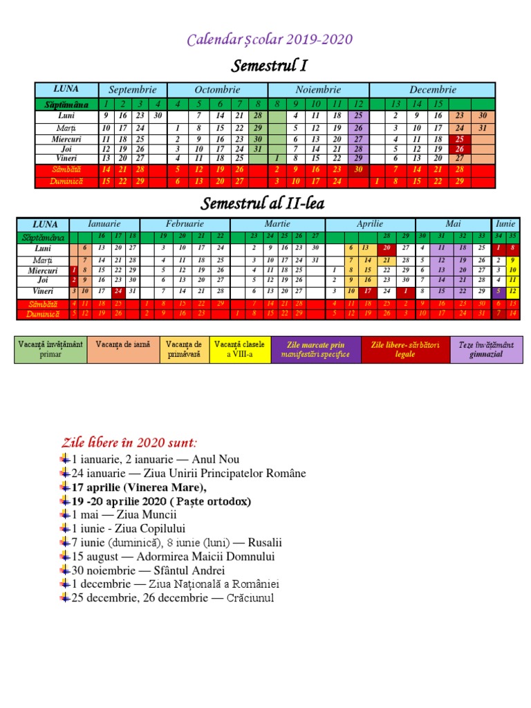 Use the search tool below to find and view important dates on a specific academic calendar. Luni marţi mie joi vin sâm dum. Structura anului școlar orarul lecțiilor si al vacanțelor din anul de invățămant 2019 2020 diez calendar periodic table calendar 2020.